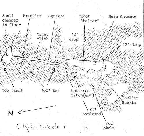 the foot of the climb to Balch’s Hole. The entrance, an almost rectangular slot about two feet long, gives