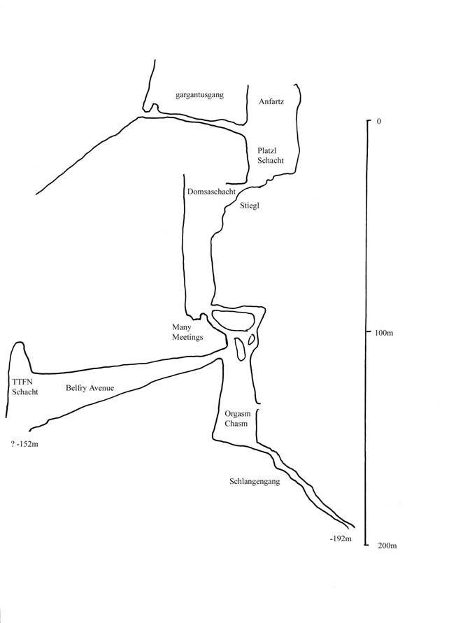 Austrian caver, but was not marked and was not on Hermann’s list. After a 5m free-climbable pitch 30m of