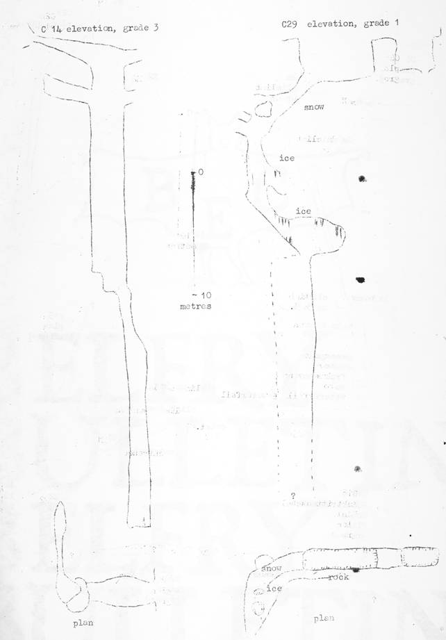 icicles en-route, to the head of a 20m pitch between ice and the rock wall. This will need looking at in 1979 using a