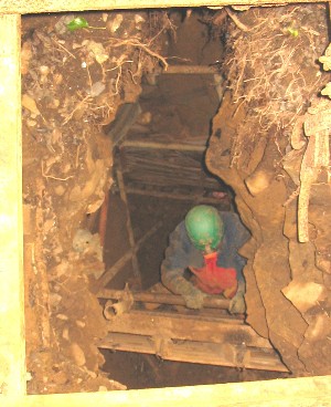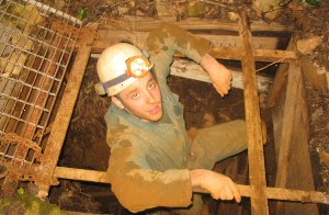 Graham M of UBSS climbing back up the shored entrance shaft – one person at a time